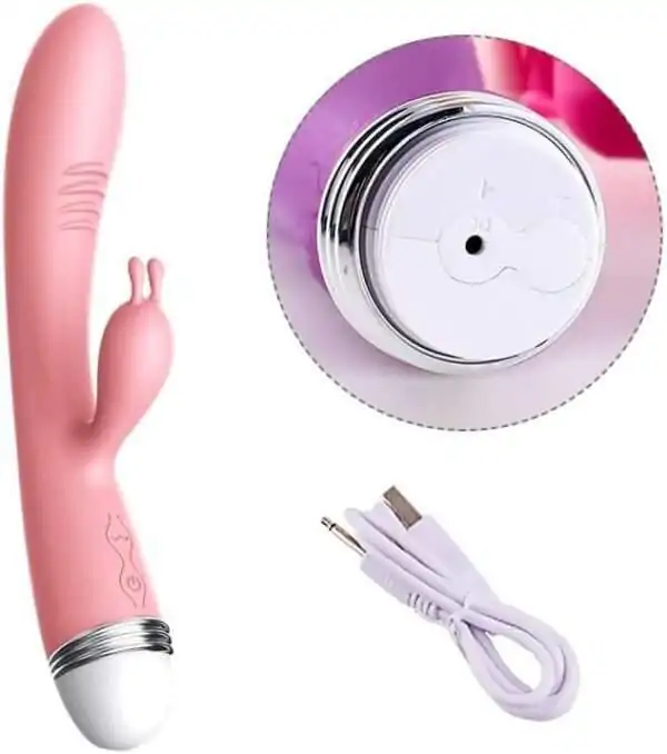 The vibrator is rechargeable and includes a compatible charging cable.